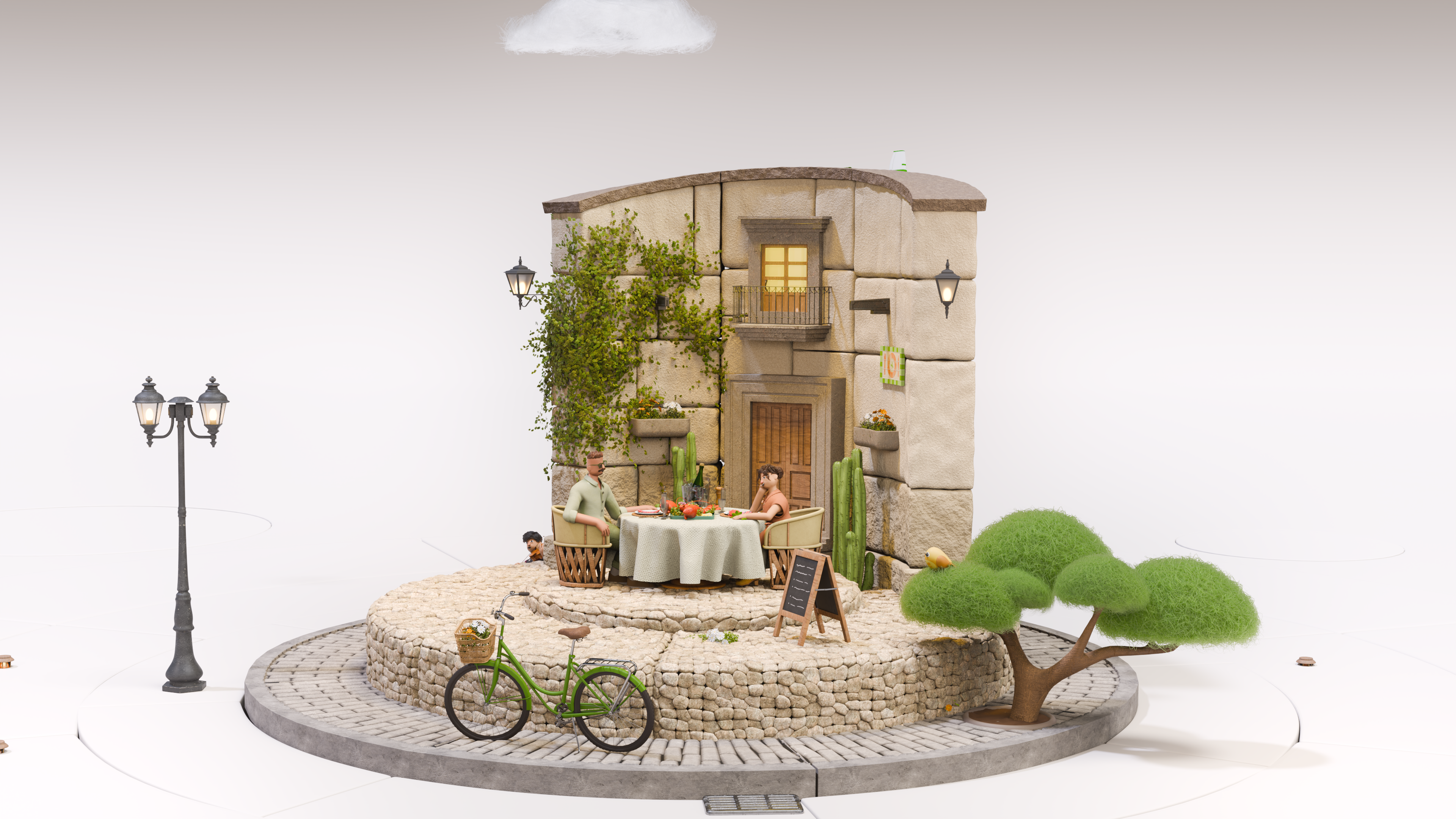 This is one of three stories that showcase characters at moments of achievement, brought to life through an aesthetic that blends realistic textures with miniature-like set designs. A neutral color palette reinforces the client’s brand identity,